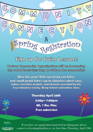 On Thursday April 26, from 5:30 p.m. to 7 p.m., the Town of Golden Recreation team is hosting the annual Community Connection and Spring Registration Night at the Mount 7 Rec Plex.